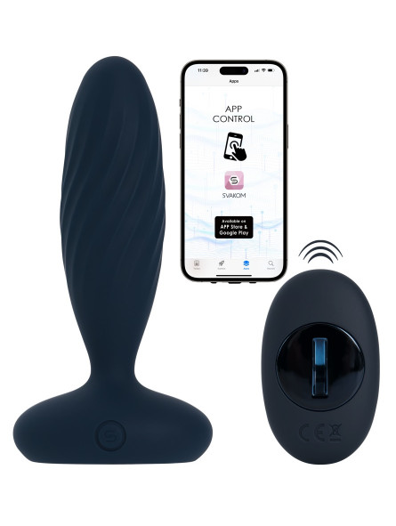 Vibromasseur anal à vibration contrôlé par application de SVAKOM avec télécommande. Le plug anal à rainures, facile pour les débutants, masse et stimule avec différentes intensités et combinaisons de poussées et de vibrations. De plus, des lumières de couleur arc-en-ciel s'allument sur la base/stopper anale qui sert également d'indicateur de charge. Plaisir anal intense avec effet spectacle !