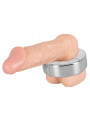Anneau pénien/étireur de testicules de couleur argentée en acier inoxydable avec segment aimanté pour l'ouverture et la fermeture. Ø intérieur 34 mm, Ø extérieur 63 mm. Épaisseur de l'anneau 20 mm. Poids 341 g. Métal.