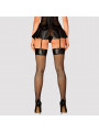 Bas noirs à jarretelles Darkessia de Obsessive en filet stretch doux. Avec une large bordure élastique en similicuir stylé. Pointes renforcées.