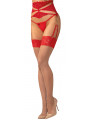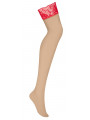 Bas jarretière Matildea de couleur nude de Obsessive avec de larges finitions élastiques en dentelle décorative d'un rouge élégant. Doux et soyeux.