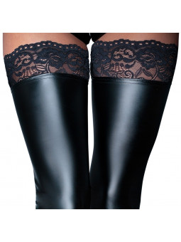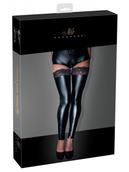 Jambiéres en noir vaporeux avec un fin imprimé de flocons de velours allover. Couture à l'arrière. Finition antidérapante au niveau des cuisses et des chevilles dans un look noir mat.