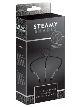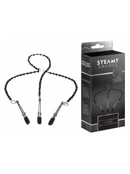 Collier intime de couleur argent avec pendentif coeur en strass et fermoirs labia.
