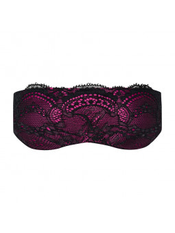 Masque opaque pour les yeux Roseberry de Obsessive en satin stretch soyeux. Rose, élégamment recouvert de dentelle noire. Avec des rubans de satin à nouer - s'adapte parfaitement à toutes les tailles de tête. Aussi très confortable comme masque de sommeil.