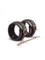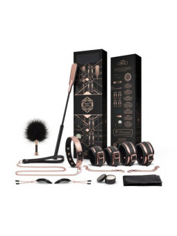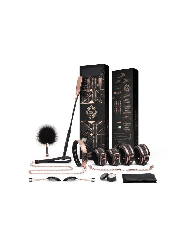 Cet élégant ensemble BDSM de 9 pièces comprend tout ce qu'il faut pour une expérience inoubliable et excitante. Que vous soyez débutant ou plus expérimenté, cet ensemble propose de nombreux défis à relever et il présente une apparence élégante et somptueuse. Engendrez de l’excitation grâce au bandeau satiné, titillez votre partenaire à l'aide du plumeau et faites-vous plaisir avec la bougie de massage prodigieusement parfumée. Privez votre partenaire de sa liberté de mouvement grâce aux menottes pour poignets et chevilles ajustables ou promenez votre partenaire à l'aide de la laisse coquine pendant que vous lui prodiguez de légers coups de fouets. Les pinces à tétons ajustables disposent de plumes qui stimulent davantage la sensibilité des mamelons. Soyez doux ou coquins, défiez-vous mutuellement et découvrez de nouvelles expériences grâce à ce joli coffret de chez Rosy Gold. Les menottes pour poignets sont ajustables de 12 à 19 cm. Longueur totale de 35 cm. Elles mesurent 5 cm de large. Les menottes pour chevilles peuvent être ajustées entre 25 et 36 cm. Longueur totale de 39 cm. Elles mesurent 5 cm de large. Le collier peut être ajusté entre 35 et 45 cm (à l'aide de boutons-pression). Il mesure 2,5 cm de large. La longueur totale de la laisse mesure 97 cm. Ingrédients de la bougie de massage : cire de noix de coco, cire de soja, extrait de parfum (rose)