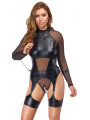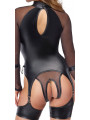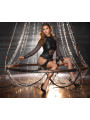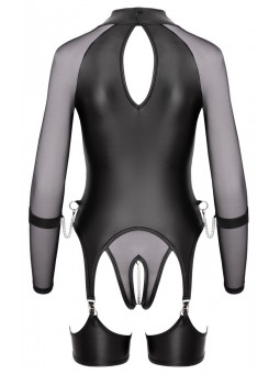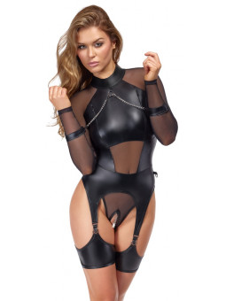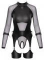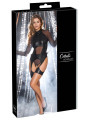 L’excitant ensemble noir de Cottelli BONDAGE contient un corps sans bretelle et des menottes douces. Le coffret est fabriqué dans un mélange élégant de filet fin et de tissu mat froid, avec des accessoires couleur argent. Il est doux et extensible pour un ajustement très confortable. Le corps à manches longues possède des fermetures éclair discrètes sur la poitrine. Le petit col debout comporte un anneau à l’avant et un bouton à l’arrière du cou. La zone de l’entrejambe ouverte et séduisante est recouverte d’une chaîne stimulante et amovible. Les larges sangles de cuisse des bretelles sont également amovibles. Il y a un anneau de chaque côté de la taille. Les menottes incluses peuvent être fixées aux anneaux grâce à leurs crochets à pression. Les menottes souples peuvent être rapidement enfilées et ajustées à leur ajustement, grâce à leurs attaches à crochet et boucle.