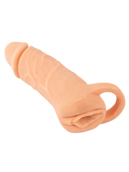 Le 2in1 Extension + Masturbateur MEDIUM de Nature Skin réunit en un seul jouet une gaine de pénis pour l'allongement/l'épaississement et un masturbateur. Design extérieur réaliste et excitant avec ouverture en forme de vagin et manchon en forme de pénis veiné avec gland rebondi. À l'intérieur, une structure de stimulation authentique et intense pour un massage parfait du pénis lors de la branlette et du plaisir à deux. L'anneau testiculaire très extensible assure une traction excitante lors de la masturbation et un maintien sûr lors de rapports sexuels épanouissants.