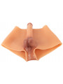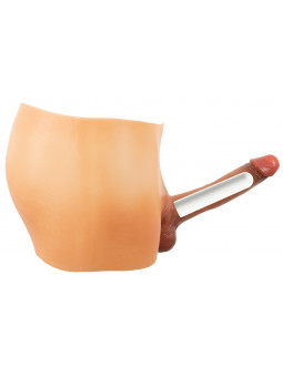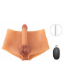 Ultra Realistic Vibrating Penis Pants de You2Toys avec pénis et testicules vibrants moulés de manière absolument réaliste. Le pli fessier et l'ouverture extensible de l'anus complètent le look réaliste. Vibrateur inclus avec télécommande (portée 8 mètres) pour 10 modes de vibration. Le vibrateur peut être retiré de la manchette pénis avec gland fermement formé. Ainsi, la culotte peut également être portée sans vibrateur comme extension du pénis.