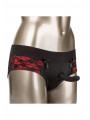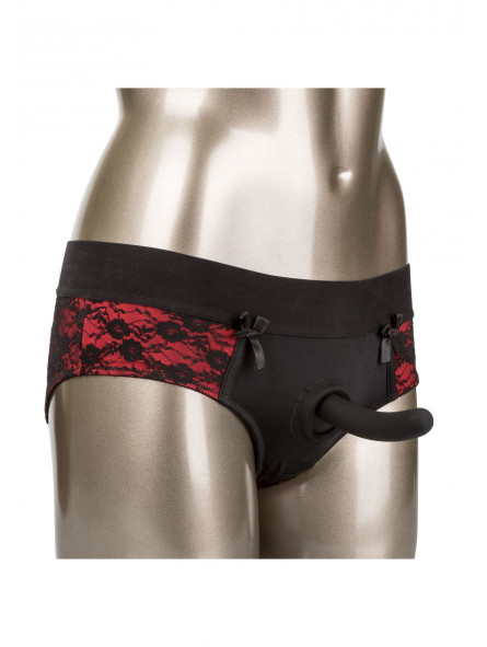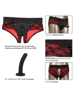 Le Scandal Set de Culottes Sans Entrejambe (S/M) donne vie à vos fantasmes les plus fous. Dotée d’un design audacieux sans entrejambe et d’une sonde en silicone de 5 pouces, cette culotte harnais de design vous invite à explorer un plaisir sans retenue. L’intérieur éponge, l’extérieur dentelé et la ceinture extensible offrent autant de soutien que de séduction. Un joint torrique renforcé maintient votre sonde sécurisée, tandis que la conception ouverte permet une accessibilité maximale et une excitation accrue. La sonde en silicone hypoallergénique incluse est contournée pour une stimulation précise. Lavable en machine pour un entretien facile, ce set de culottes provocateur convient à des tailles de taille allant de 26 » à 34 ». Le jeu de rôle n’a jamais été aussi stylé — ni aussi satisfaisant.