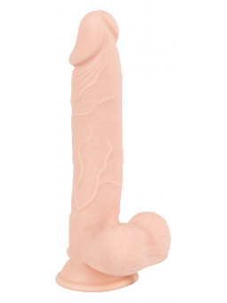 Godemiché au look de pénis très détaillé avec un gland rebondi, un corps veiné et des testicules ridés. La particularité de ce godemiché est qu'il est flexible et garde sa position sans se balancer en arrière (flexion possible jusqu'à 30 degrés maximum). Sur pied ventouse