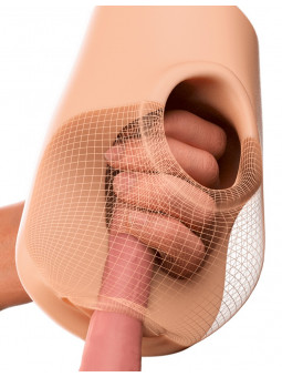 Le canal de plaisir élastique est équipé de picots stimulants qui massent intensément l'ensemble du pénis. Le design riche en détails combiné à la matière Fanta Flesh semblable à la peau offre un aspect et un toucher particulièrement authentiques. Et une sensation particulièrement réaliste ! Le canal de plaisir est ouvert à l'arrière, ce qui permet d'insérer facilement un vibro-œuf ou un vibro-bullet (non inclus). Ainsi, l'expérience peut encore être intensifiée si nécessaire.