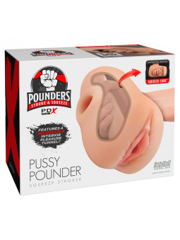 Le masturbateur Pussy Pounder Squeeze Stroker de PDX Plus à l'apparence d'un vagin convainc par son maniement innovant et sa grande précision des détails. Le design breveté Squeeze Core offre une cavité flexible qui s'adapte parfaitement à la main, ainsi qu'un canal de plaisir intérieur qui peut être comprimé individuellement. Un contrôle total lors de la branlette avec des sensations réelles absolues et une prise en main parfaite !