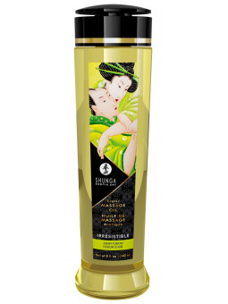 Huile de massage érotique luxueuse Irresistible de Shunga au parfum asiatique sensuel, fleuri et fruité, qui éveille les sens lors d'un massage en solo ou avec un partenaire et donne envie d'en savoir plus ! L'huile de massage végétalienne est composée à 100% d'huiles naturelles pressées à froid et contient de la vitamine E qui soigne la peau. Elle glisse doucement et facilement sur la peau, sans laisser de sensation grasse désagréable ni de résidus. Au contraire, il laisse la peau douce et soyeuse ! De plus, il est très économique - son contenu suffit pour de nombreux massages sensuels et passionnés de tout le corps.