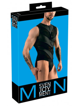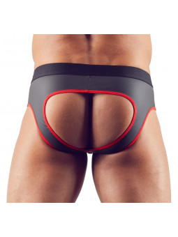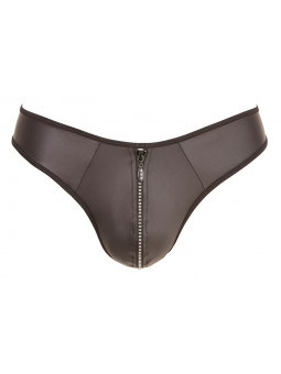 String en cuir brillant imitation Rio avec ouverture frontale élastique.