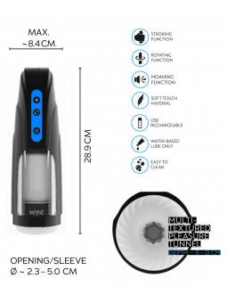 Masturbateur puissant 09 de WYNE, qui dorlote le pénis de tous les côtés dans le manchon intérieur rotatif et excitant qui se déplace de haut en bas. Les gémissements sexy et soufflés par les écouteurs fournis créent une ambiance agréable. Il suffit de s'asseoir et de profiter !