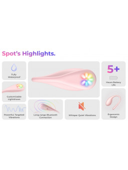 Le Spot est équipé de 6 modes manuels préréglés qui peuvent être facilement contrôlés en appuyant sur un bouton directement sur l'extrémité étroite (extérieure) du vibromasseur. Il est encore plus intéressant d'utiliser le Spot via Bluetooth/WLAN/App pour un plaisir interactif. L'application FeelConnect permet d'adapter individuellement les vibrations et le spectacle lumineux, de synchroniser la musique et les vidéos, de jouer à distance et d'interagir à distance avec le ou la partenaire. FeelPerformer permet de se connecter en temps réel à des plateformes de webcam pour présenter en direct ses propres shows intimes. Le spot marque des points à cet égard avec une connexion Bluetooth puissante et plus de 4 heures d'autonomie de la batterie pour un plaisir fiable sans interruption.