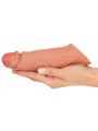 Fabriqué en silicone liquide super-souple avec de fines veines et un gland détaillé, l'étui pénien a l'air très réaliste - et il est aussi très doux au toucher. L'étui en silicone extensible s'enfile simplement sur le membre. Entièrement élastique, la gaine douce et soyeuse s'adapte à la peau du pénis. L'ajustement agréablement serré peut soutenir l'érection de manière optimale. L'anneau testiculaire extensible assure un maintien ferme et sûr sans glisser.