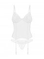 Ensemble de lingerie transparent Alissium de Obsessive avec porte-jarretelles et string. Tulle délicat avec dentelle structurée et couleur charmante : blanc intemporel. Doux et élastique sur tout le pourtour pour un grand confort. Entre les bonnets en dentelle douce, un détail décoratif discret. Les bretelles et la fermeture à crochets dans le dos sont réglables, tout comme les jarretelles. Le string en dentelle à peine coupé complète le look de séduction sensuel.