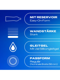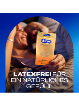 Préservatifs transparents Hautnah Latexfrei de Durex en polyisoprène pour une sensation intense et naturelle de peau à peau. Humidifié avec beaucoup de gel lubrifiant à base de silicone. Agréable au niveau de l'odeur. La forme anatomique innovante Easy-on offre un peu plus de place aux bons endroits par rapport aux préservatifs cylindriques traditionnels - pour une mise en place et un déroulement plus faciles ainsi qu'une assise confortable et des sensations intenses.
