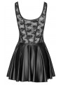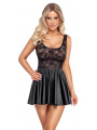 Mini-robe noire à bretelles de Cottelli COSTUMES. En belle dentelle (top) mélangée à un look mat noble (jupe). Doux et élastique sur tout le pourtour pour un grand confort. Haut en dentelle souple à fleur de peau avec passepoils et coutures formées dans un look mat. La jupe évasée est entièrement dans un look mat.