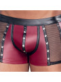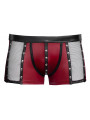 Pants moulants de NEK dans un look rouge mat cool avec des détails noirs et des empiècements en filet sur les côtés. Des rivets décoratifs argentés soulignent le look rapide, tout comme la fermeture à boutons-pression pour l'ouverture dans la poche. Doux, élastique et avec un élastique à la taille recouvert pour un maximum de confort.