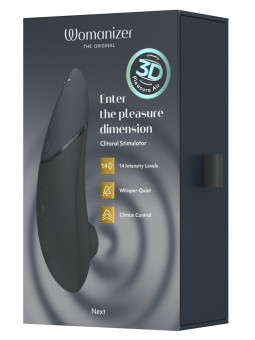 Le Womanizer NEXT désormais doté de la technologie 3D Pleasure Air presque silencieuse, qui stimule le clitoris sans contact et avec précision. Avec 14 niveaux d'intensité (+/-) et le nouveau Climax Control en 3 niveaux, l'utilisatrice peut modifier non seulement l'intensité mais aussi la profondeur des ondes de pression pulsées pour une sensation naturelle incomparable. Et vivre des orgasmes multiples ! Sans effet d'accoutumance ni surstimulation. Pour une fin d'orgasme détendue, le NEXT repasse ensuite directement au niveau le plus bas (Afterglow) en appuyant sur un bouton.