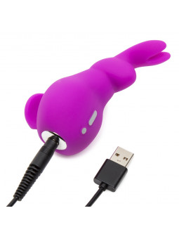 Le vibromasseur Clitoral Vibe de Happy Rabbit, en forme de lapin et au format de voyage pratique, dispose de 12 modes de vibration, d'une poignée pratique et d'un verrouillage des touches. Étanche à l'eau. Rechargeable avec le câble USB fourni.