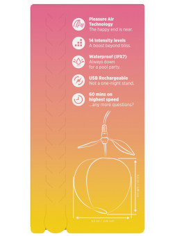 Stimulateur clitoridien Pink Peach de ROMP, petit et maniable, au design de pêche sucrée. Équipé de la technologie Pleasure Air pour des orgasmes intenses en un rien de temps. Les vibrations pulsées de l'air stimulent le clitoris en 14 intensités, sans aucun contact - sans effet d'accoutumance ni sensation de surexcitation. Tout simplement en appuyant sur un bouton ! Même dans la baignoire ou sous la douche, car le pulsateur Pink Peach est étanche.